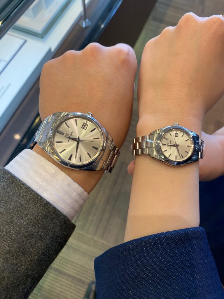 最近はGrand Seikoの時計をペアウォッチで購入していただいている方が増えており、皆様合わせ方はそれぞれです。