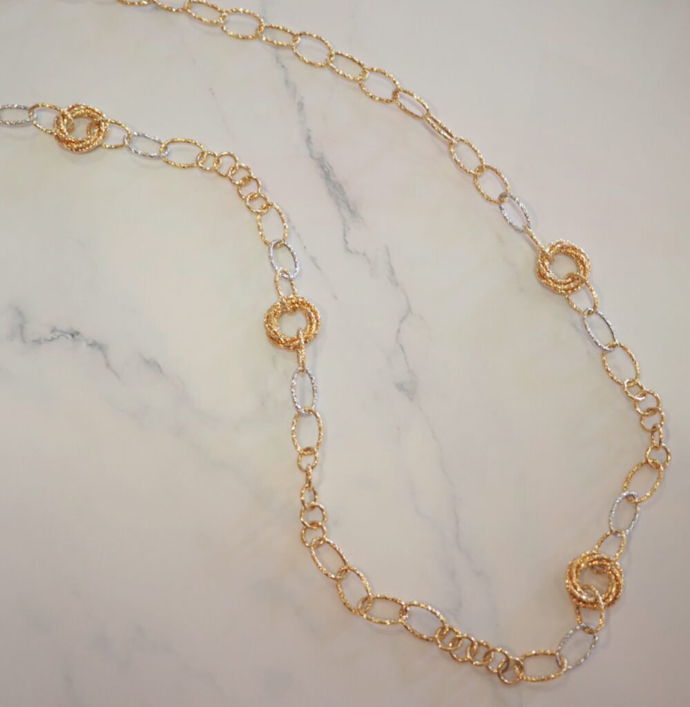 ボリューム感たっぷりな、YGとWGのコンビネックレスです。
