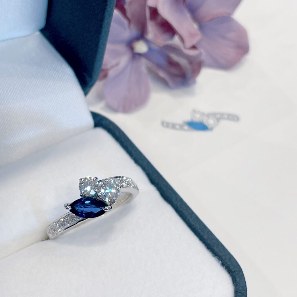 マーキスカットの凛としたサファイアに