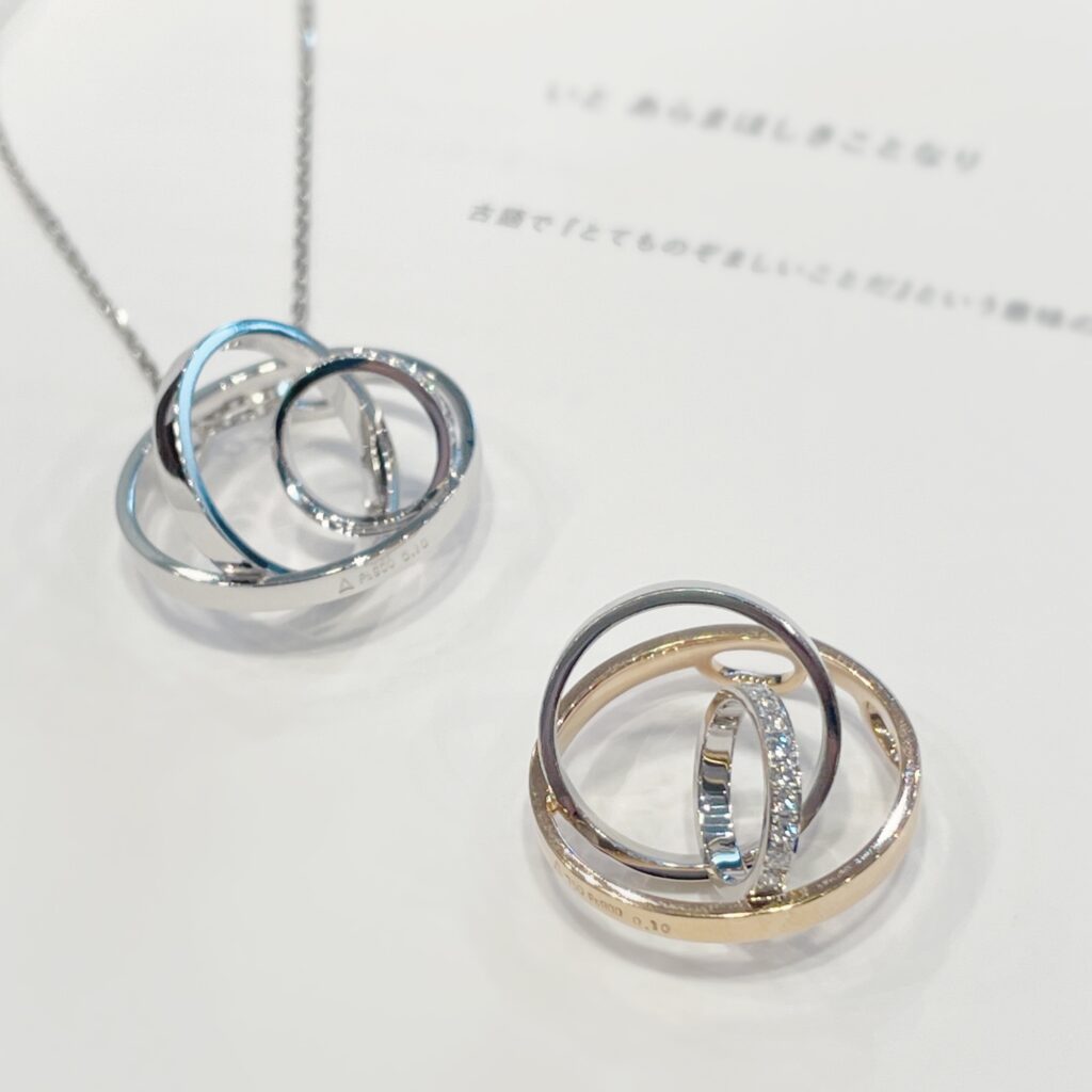 (左から)「双」ペンダント MN1225Y PT/YG製