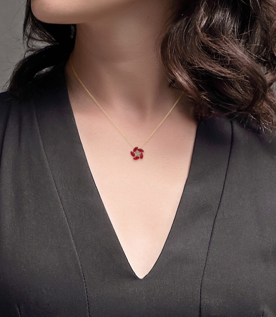 5石のマーキスカットルビーが印象的な