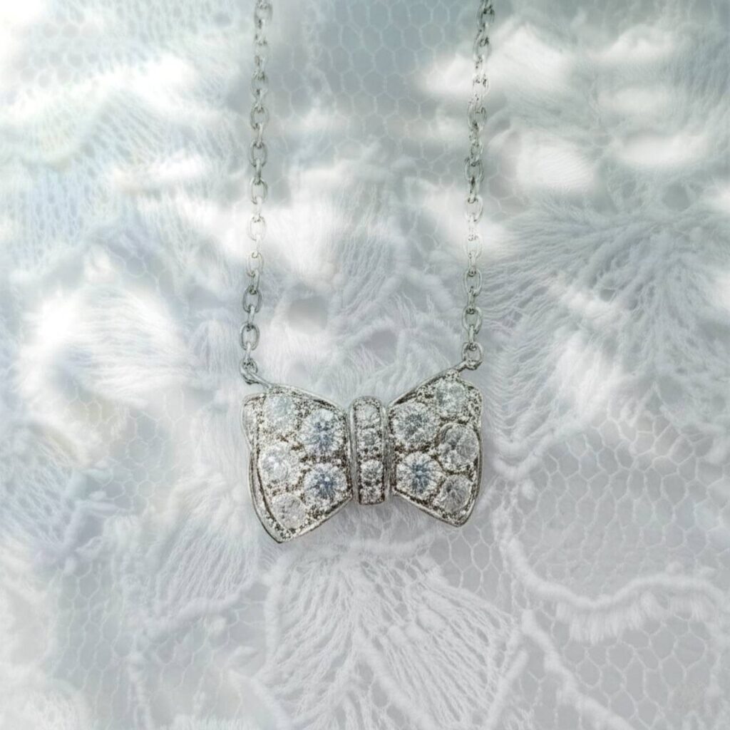 【Gimel-ギメル-】きらめきが胸元を彩るリボンネックレス【安心堂沼津店】