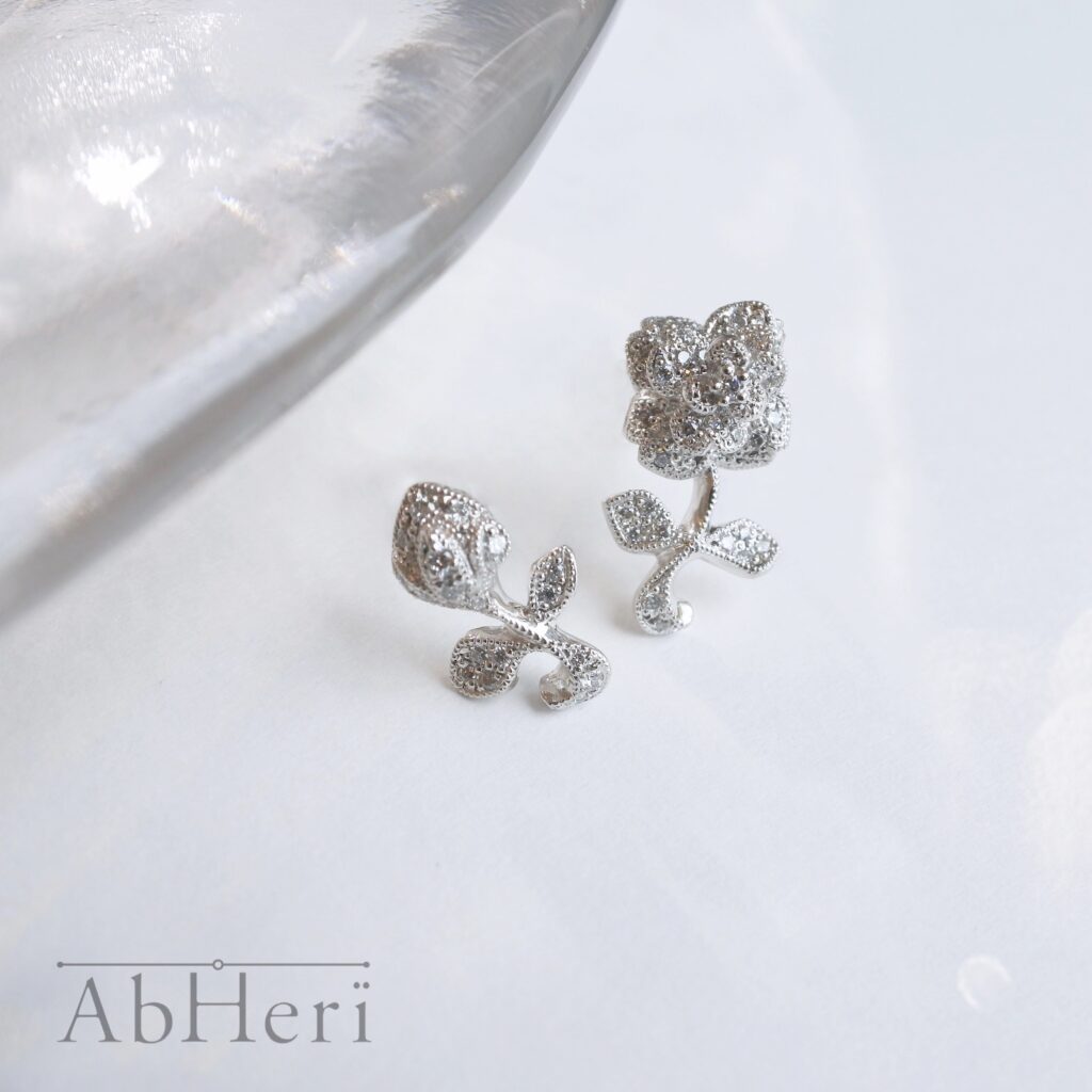 アシンメトリーのバラのピアスです。