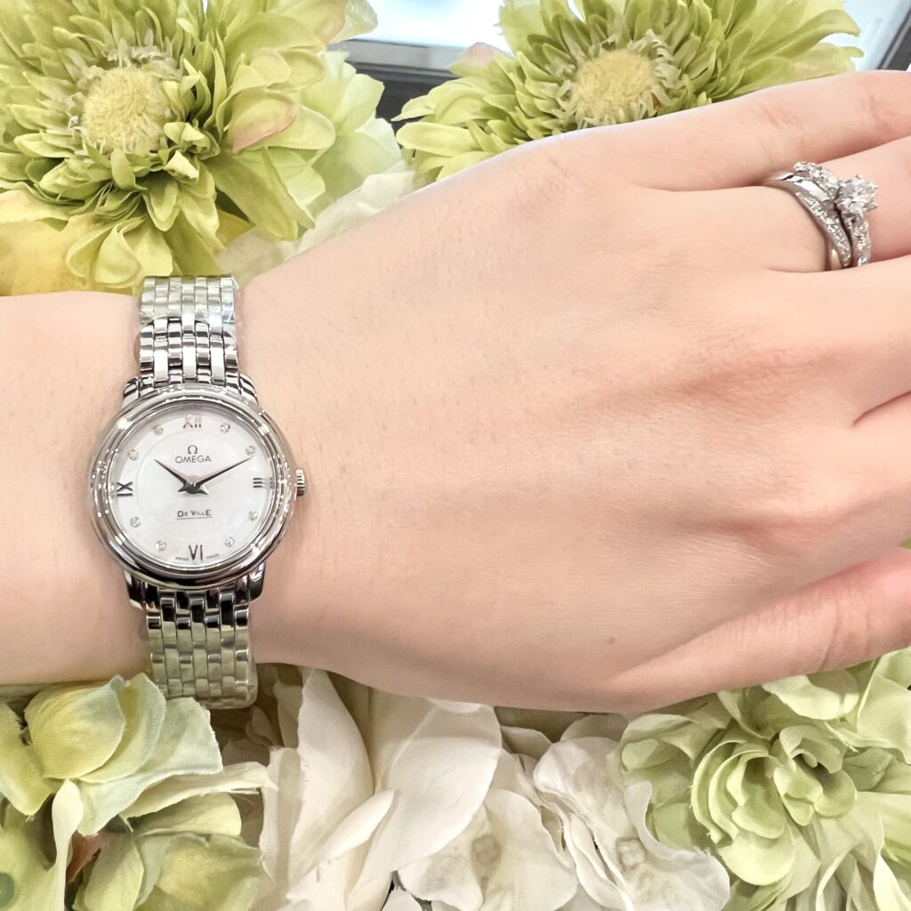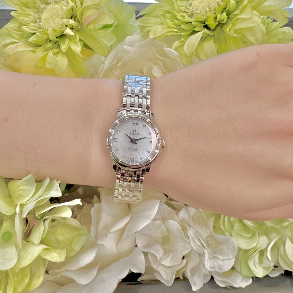 シーマスターはオメガの中でもスピードマスターに並ぶ代表的なモデルであります。今回ご紹介させていただいたシーマスターはクォーツモデルで、現在レディースにしかございません。