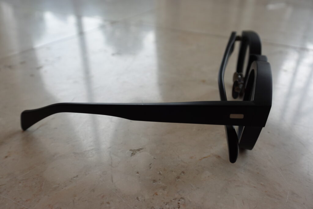 太めなセルフレームでフロントは定番のボストン型のシェイプを採用しています。