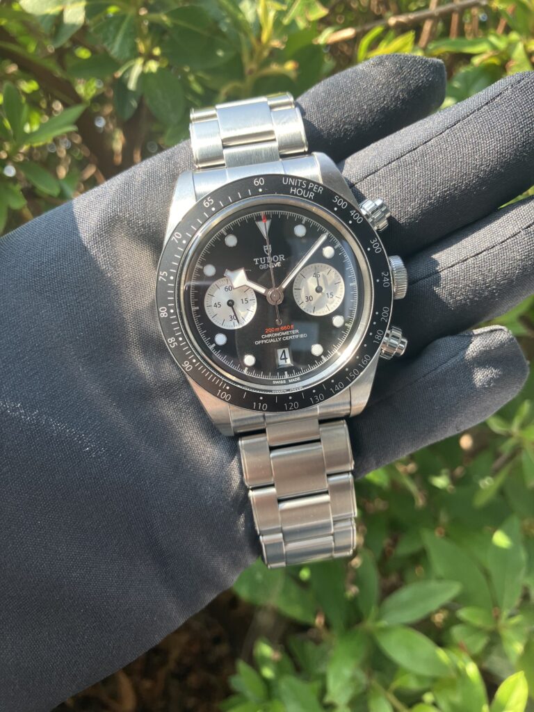 黒文字盤にシルバーのカウンターが王道のカッコよさを演出。
