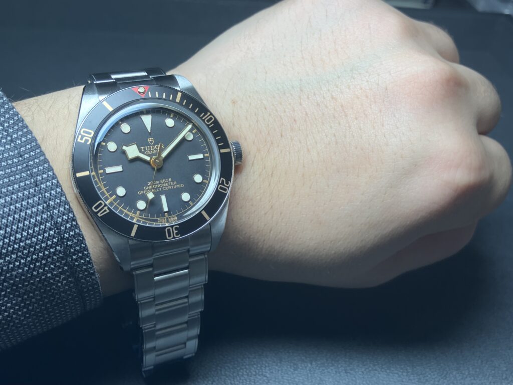不意にぶつけてしまったり、腕が疲れてしまったりと気を遣う場面が多いですが、チューダーのブラックベイ 58はその心配はなく、気兼ねなく着用できるのがストロングポイントです!