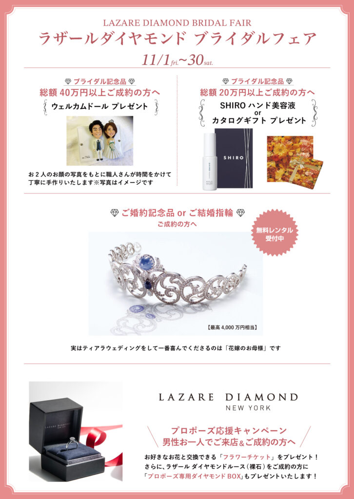 ぜひ店頭にてラザールがお届けする最上級のダイヤモンドの輝きをお楽しみください。