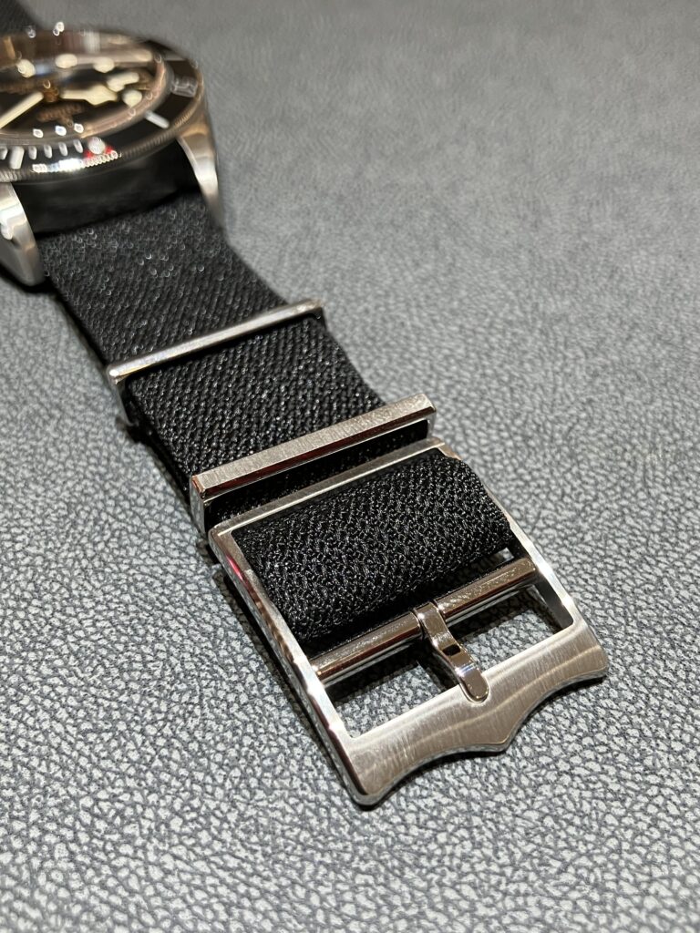 尾錠の形はTUDORのロゴである盾をモチーフにしており、