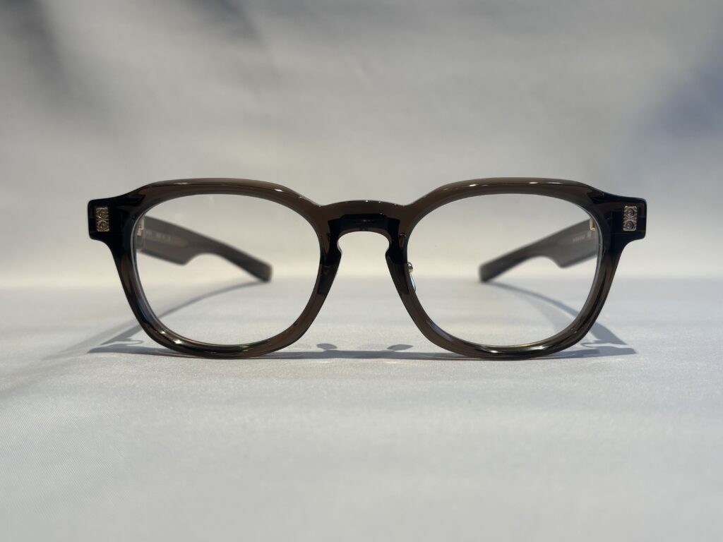 8mm生地によるフレームの存在感やレンズ周辺にはカットを施すことで立体的な表情を醸し出しています。