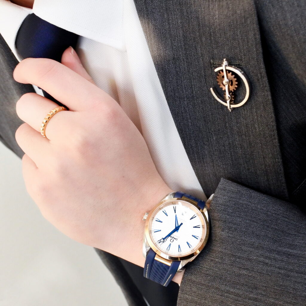 アクアテラコレクションの中でも小ぶりなケースサイズは、「腕細いんです」と笑う男性スタッフにぴったり。