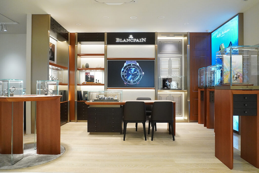 ブランパンの雰囲気感じながらゆっくりと時計をご覧いただけます