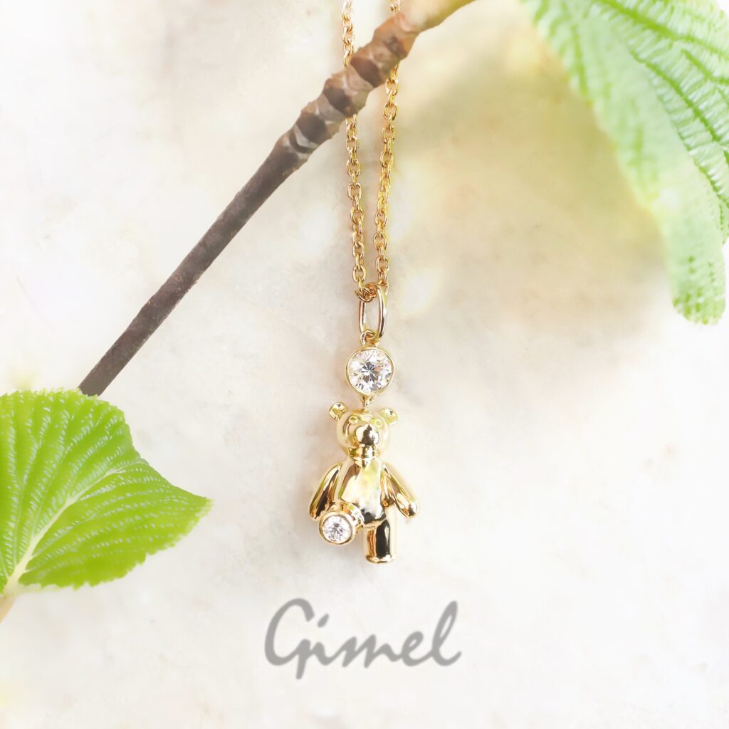 くまちゃんの上にはギメルの厳しい基準をクリアした美しいダイヤモンドが輝きます。