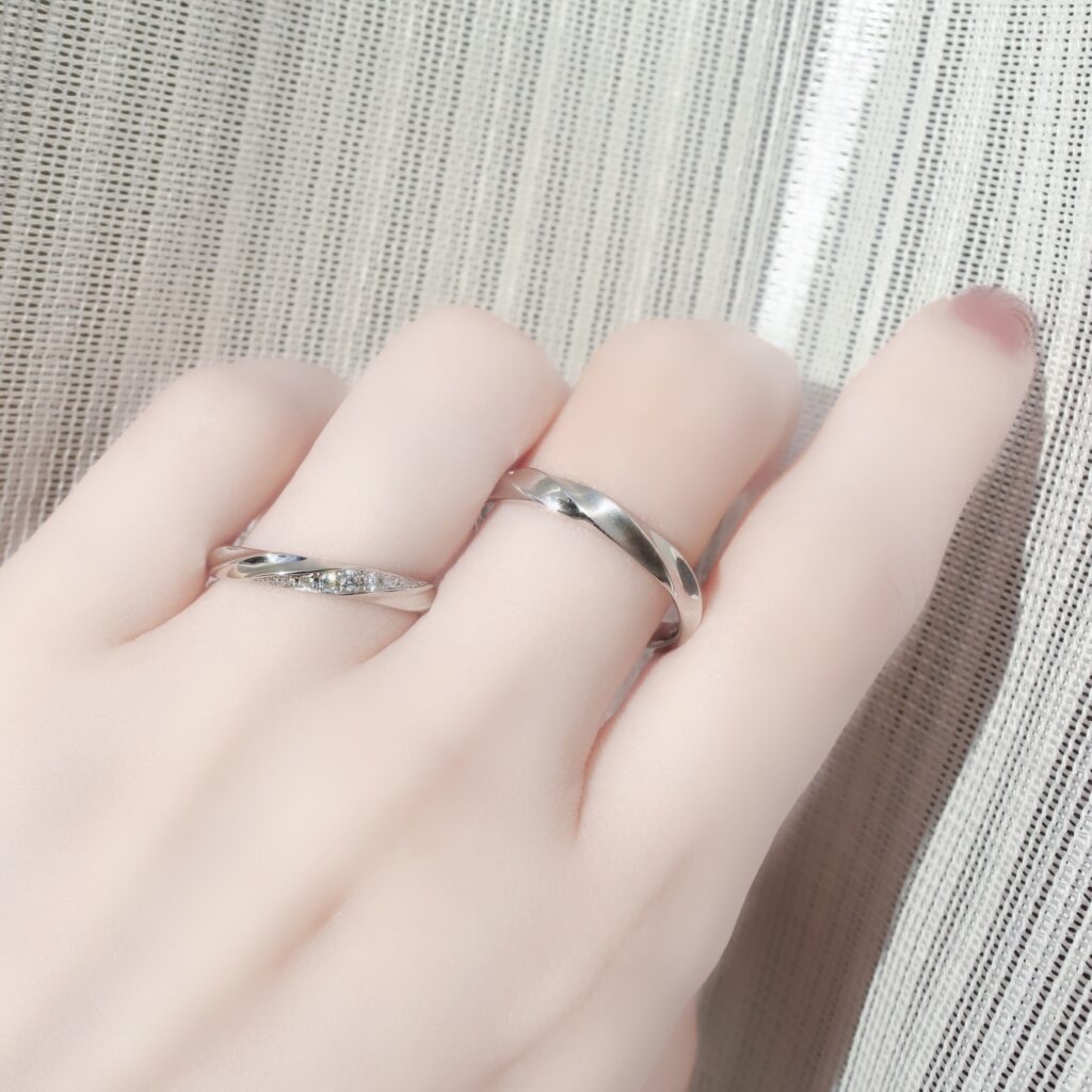 女性用にはダイヤモンドが9石セッティングされており、非常に華やかで