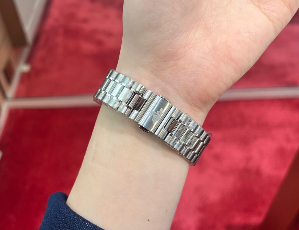中央の駒は鏡面ポリッシュ、両側はツヤ消しのヘアラインです。