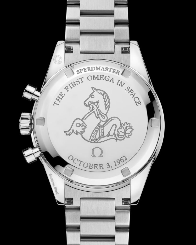裏蓋には、The First Omega in Spaceと、シラーが宇宙に飛び立った日付、October 3,1962の