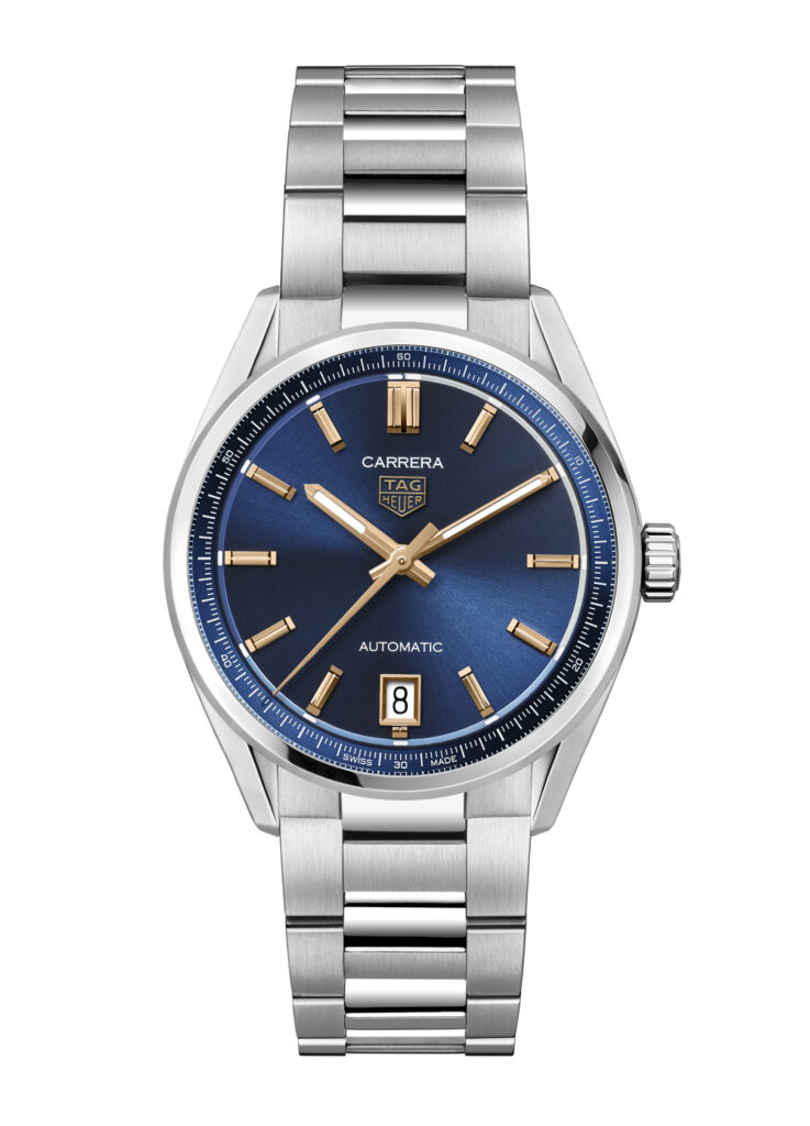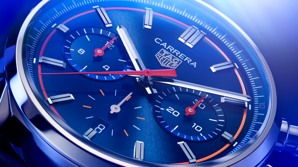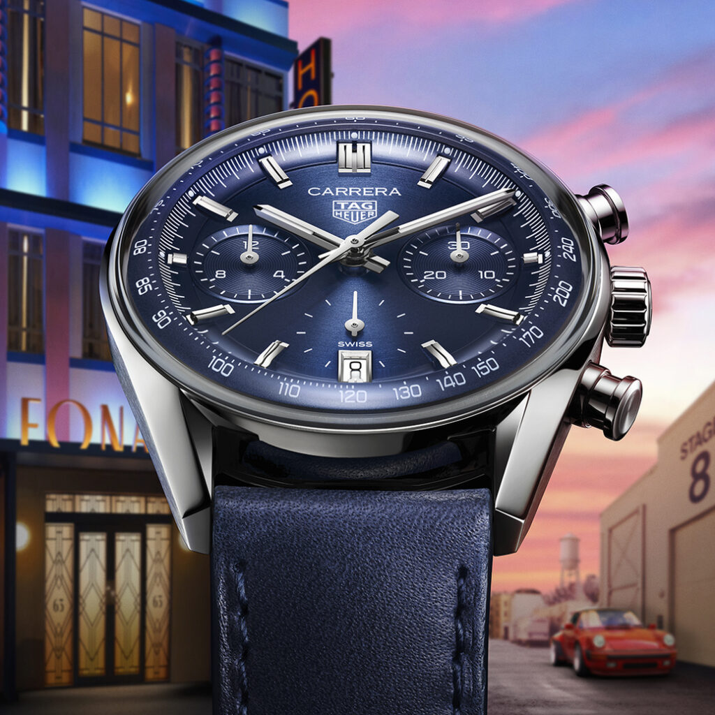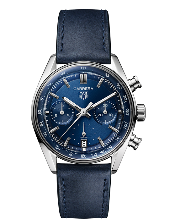 タグ・ホイヤーカレラのシグネチャー的ブルーのルックをもつこのモデルは、 神話的ともいえるカレラをクラシックなエレガンスの象徴として再解釈。