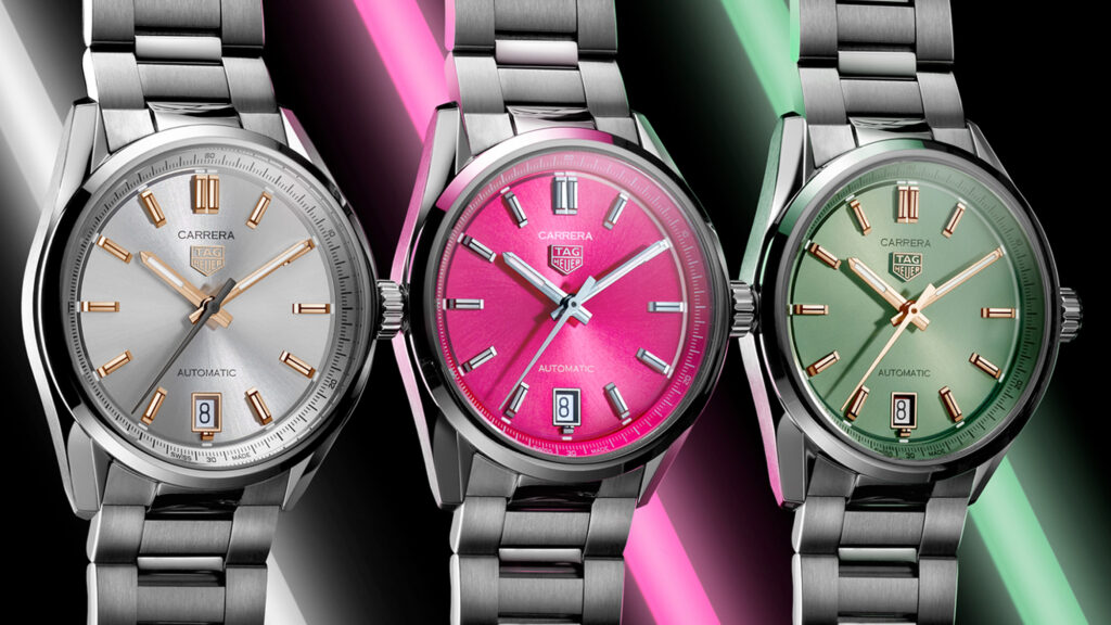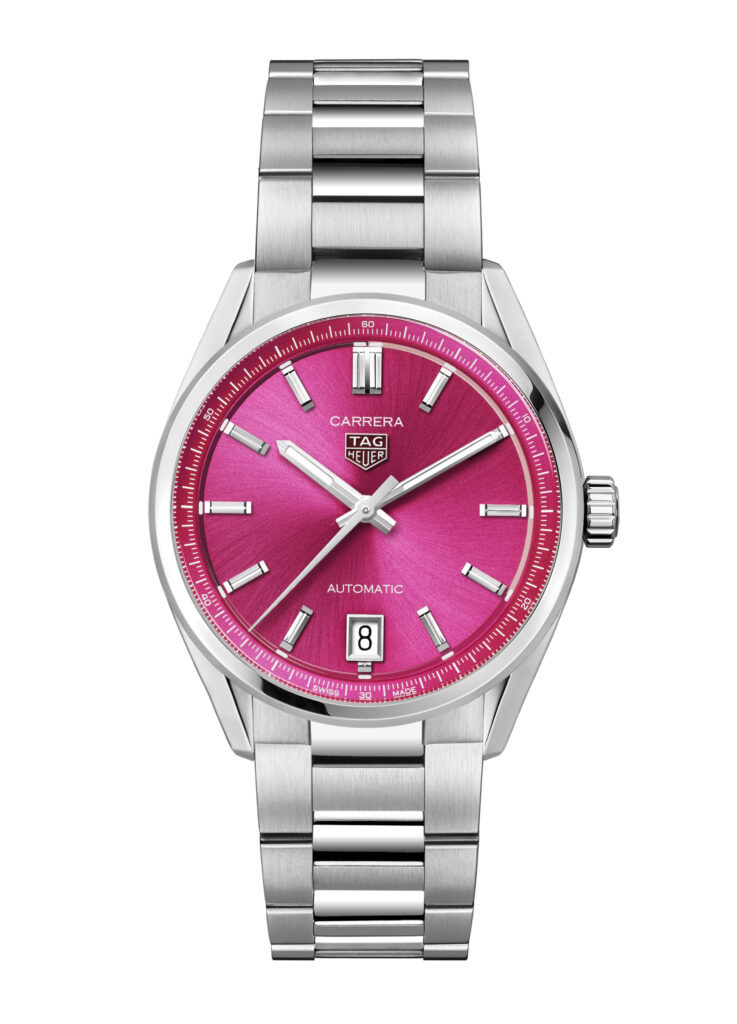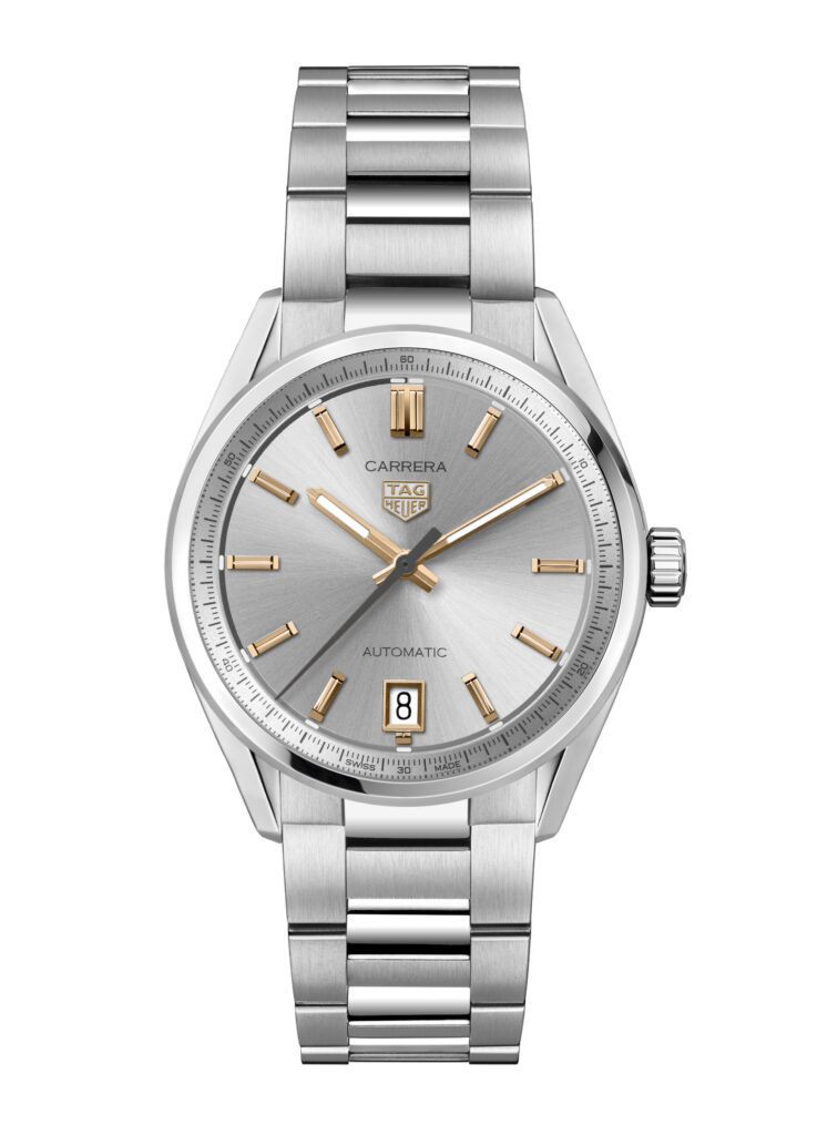 より薄くなったラグを備えた、超エルゴノミックなタグ・ホイヤー カレラ デイト。エレガンスとコンフォートの完璧なバランスを湛えたウォッチです。堅牢なステンレススティールのデザインに、カラフルな各色のダイヤルが、高貴な雰囲気を与えています。