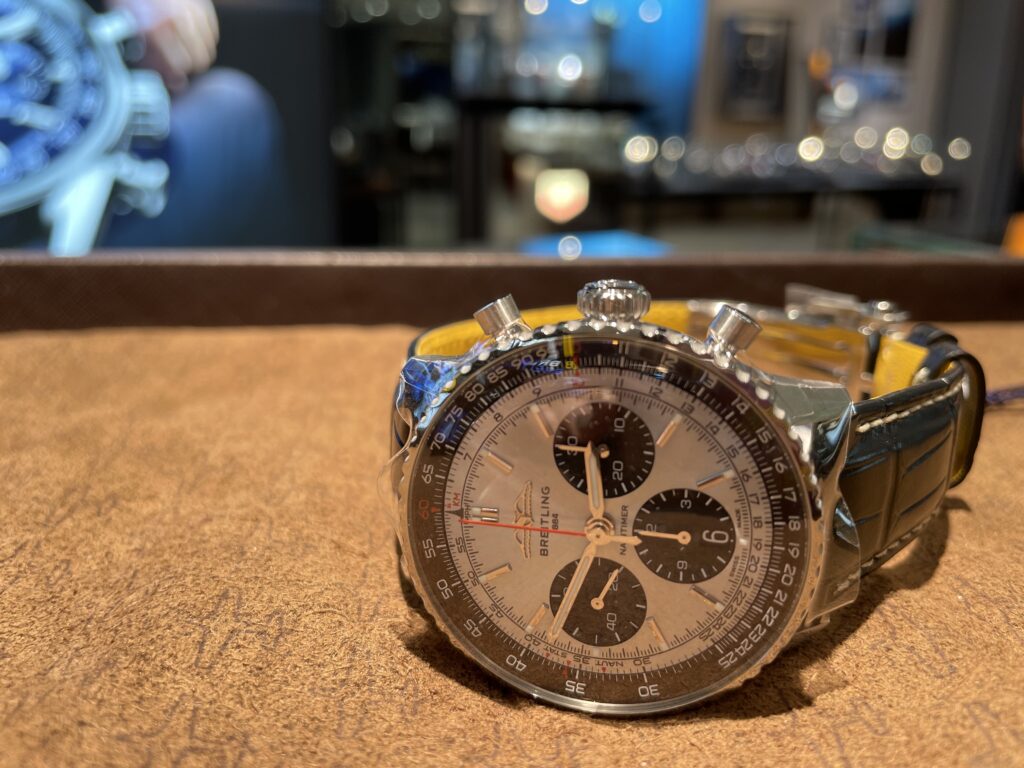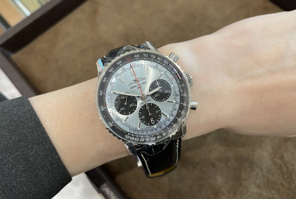 ナビタイマー41のアイスブルー!写真では本当に本当にアイスブルーの良さが伝わらなくて申し訳ないです…写真撮るの下手なのかな…😭😭ですがこれは店頭にきてみていただきたいということにしておきます!!笑