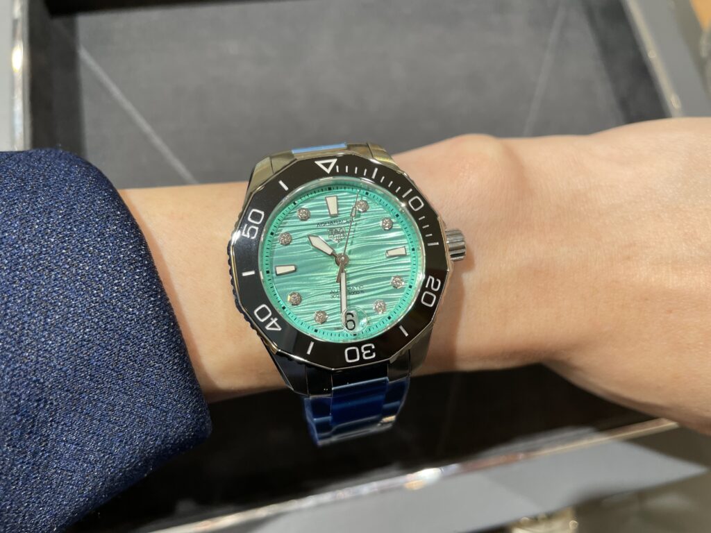 さてそんな本日は女性につけて頂きたい時計をご紹介いたします!爽やかなグリーンの文字盤にダイヤモンドがついたこの一品