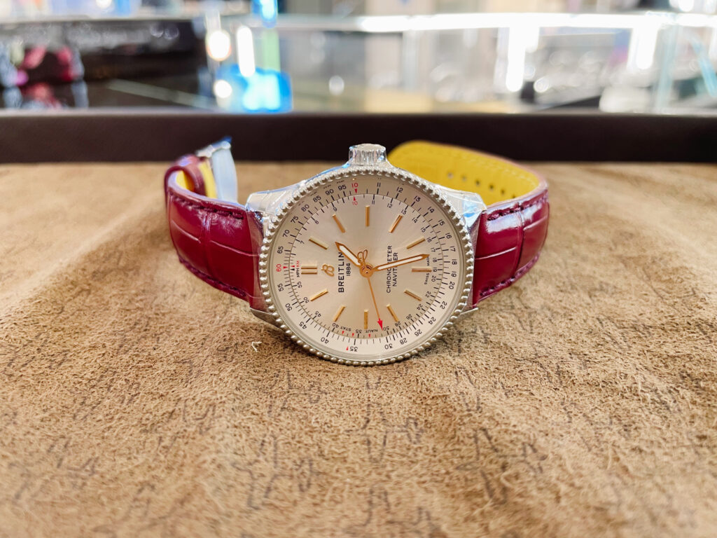少し前にご紹介した新作とは違い少し大きめの35mmのサイズです☆何を隠そう正直わたしは新作よりこちらの方が好みなのです!どちらも可愛いのですが是非店頭で見比べていただきたいです!今回はこちらのナビタイマー35mmのみご紹介しますので新作が気になった方はこちらをどうぞ!!