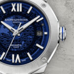メタリックブルーの文字盤が爽やかな印象を与えつつ、高級感が漂うモデルとなっております。