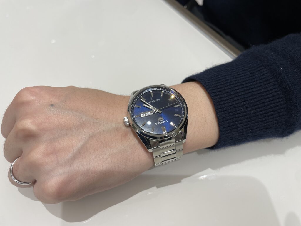 とってもお似合いですね!!💫このデイデイトのブルーはタグ・ホイヤーの中でも1番人気!色が綺麗なのはもちろん大きさも使いやすいお品物です。スーツにはもちろん私服でカジュアルが多い方でも非常に使いやすいですよ!時計の中でもこれだけは抑えたい!一品です✨みなさんも真似してみてはいかがでしょうか??