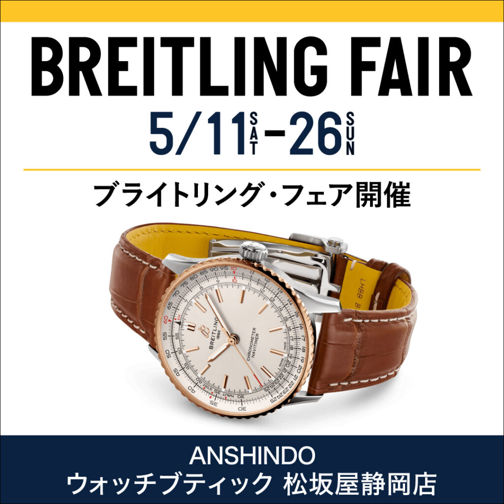 早速本題ですが明日よりブライトリングフェアを開催します✨遠目なので少しわかりにくいですがたくさんの時計が揃いました🙌見応え抜群です!時計に見つめられている気分になります🥹