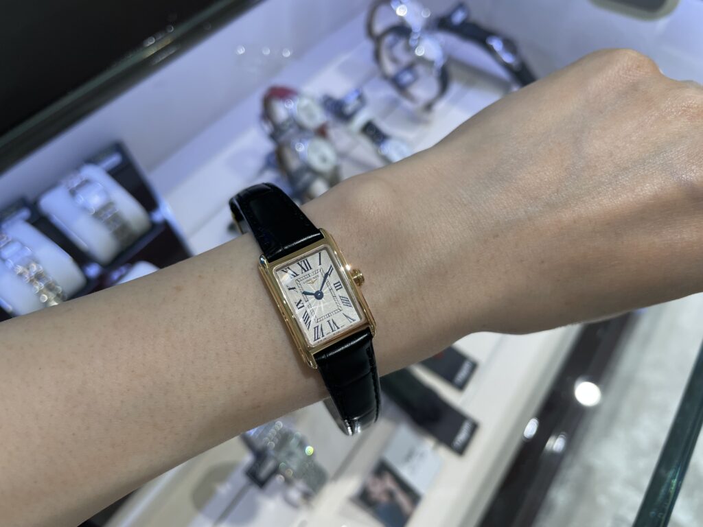 かわいいこのピンクゴールド!!元々このドルチェヴィータは男女問わずロンジンでは大人気の時計なのですが、このカラーは特にパッと目を惹きますよね🥺今回はピンクゴールドのご紹介ですが、素材がステンレスでのご用意もあるのでカジュアルに着けたい方にもおすすめの時計となっております。また縦長なケースで腕がスッキリと細く見えるのも嬉しいポイントですね✨