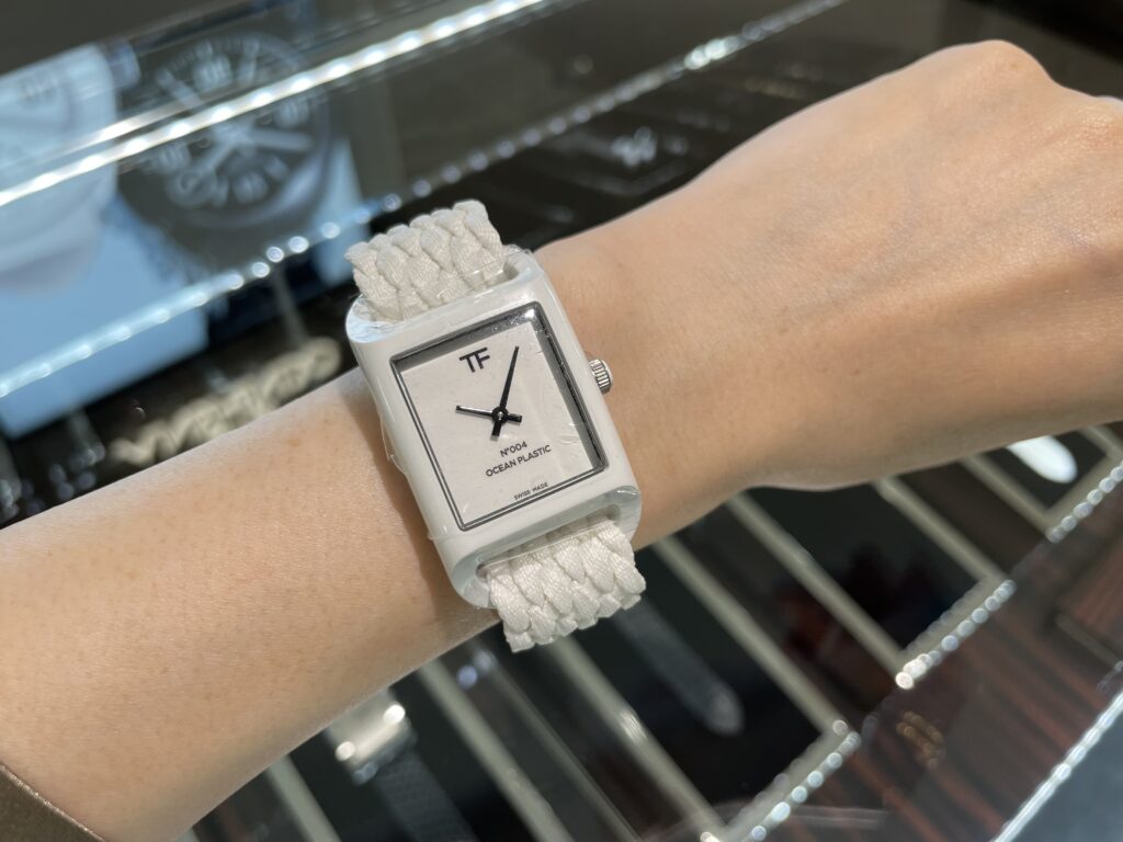 なんともおしゃれ!!!文字盤がとてもシンプルで秒針もないのでゆったりと時の流れを感じれそうですね🤭そして100mパーセントオーシャンプラスチックのストラップはご自身で洗うこともできるので清潔に保つことができますね!