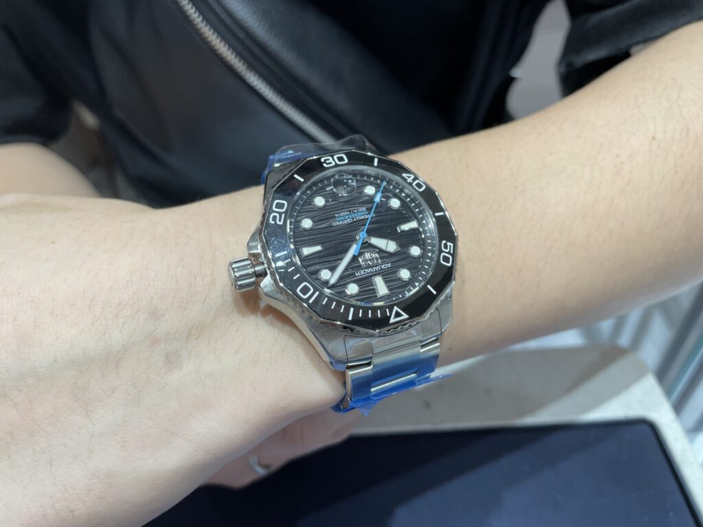 こちらは以前からアクアレーサーが気になっている!というお客様にご試着の際、許可をいただき写真を撮らせてもらいました🫰こちらは先ほどご紹介したカラーとはお色違いのブラックですがブルーともまた雰囲気が変わりますね!秒針がブルーになり締まって見えます💫とってもお似合いでした!!是非またお会いするのを楽しみにしております🙆♀️