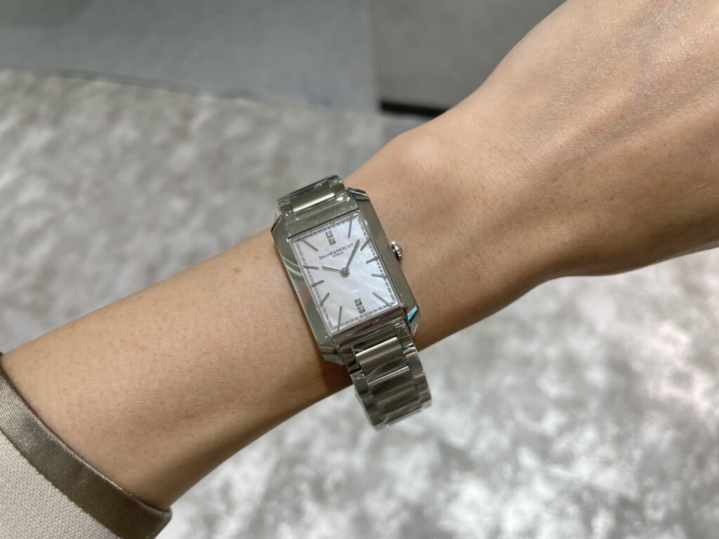ボームアンドメルシエのハンプトン!!特にこの時計はシェルにダイヤに美しさが凝縮しております🥰また一緒に写っている革ベルトは別売りになりますが自身で交換ができ、その日の気分に合わせて替えれるのは楽しいですよね!カラーも現在店頭には3色ですが全部で13色あるので、きっとあなたにピッタリなカラーが見つかるはずです🫶シェル文字盤だと何色でも似合いますね!