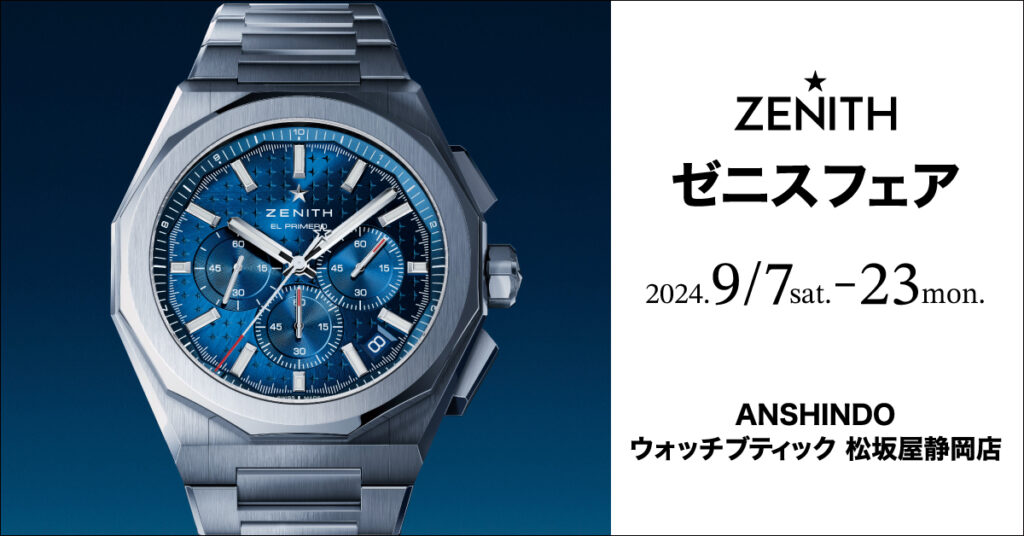 ANSHINDO ウォッチブティック 松坂屋静岡店では、9/7(土)〜23(月)の期間、ゼニスフェアを開催いたします。