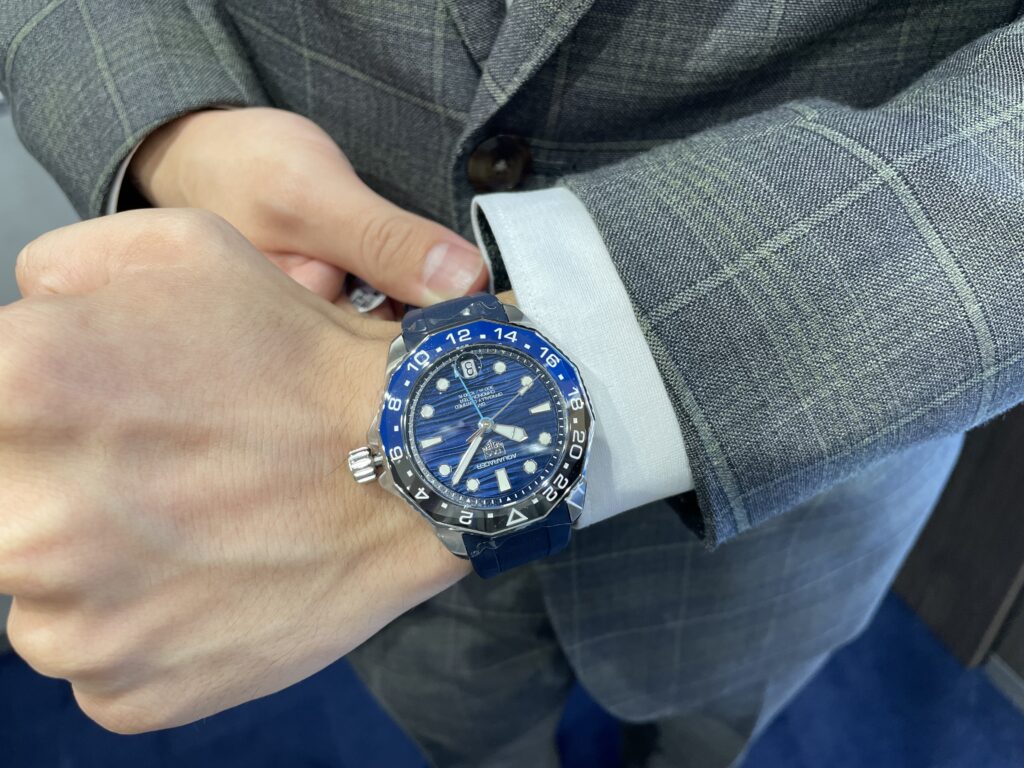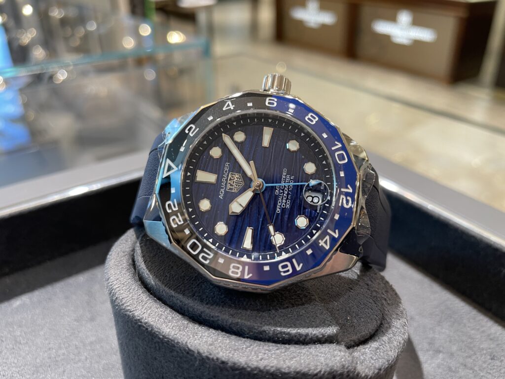 ブルーのダイヤルを備えたタグ・ホイヤー アクアレーサー プロフェッショナル300 GMT。大胆に生きる人のためにデザインされたこのウォッチで水中での限界のその先へ🌊ブルーのラバーストラップが合わせられ、耐久性に優れると同時にスタイリッシュです✨陸でも海でも最高のパートナーとなりますね☺️