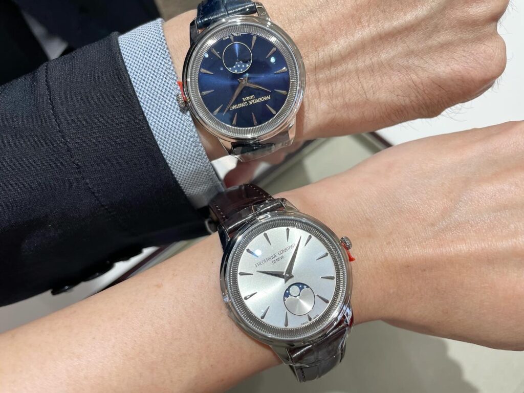 このようにペアで使うのも素敵ですよね〜🤭カップルやご夫婦で日によってカラーを変えて使うのも気分が変わって良いかもしれませんね🫰またムーンフェイズがクラシック感を演出してくれて、より高級感が高まります🌕