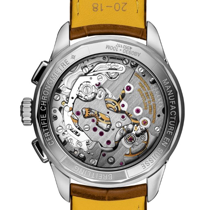 クロノグラフは、手巻き式のCOSC認証を受けたブライトリングマニュファクチュール