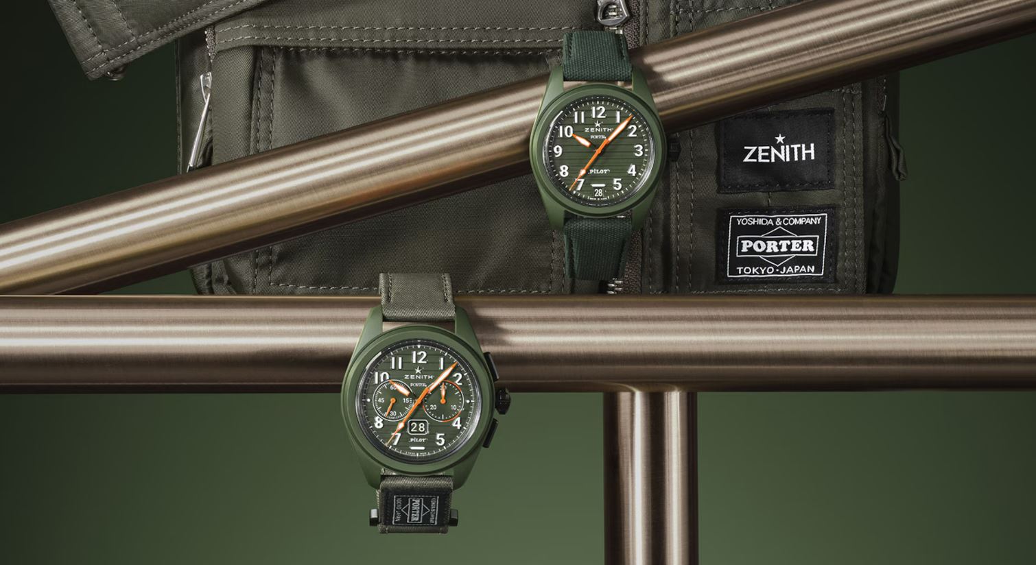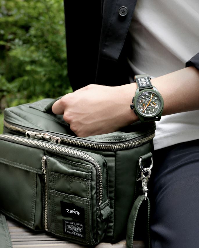 日本のバッグブランド ポーターとゼニスがコラボレーションした「パイロット オートマティック ポーター エディション」は、2つのブランドに共通するスタイルのある旅への情熱にインスパイアされた限定モデル。