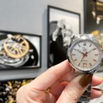 ダイヤのキラキラと文字盤のグラデーションが美しいです🥹✨少し大きめなので時間も見やすく、アクセサリー代わりとしても良いですよね😌ベルトを変えると下のように雰囲気がガラっと変わるので楽しいですよ〜!👇