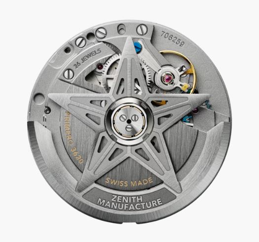 ケースバックからはゼニス自慢のムーブメント、エル・プリメロ 3620を見る事ができます。
