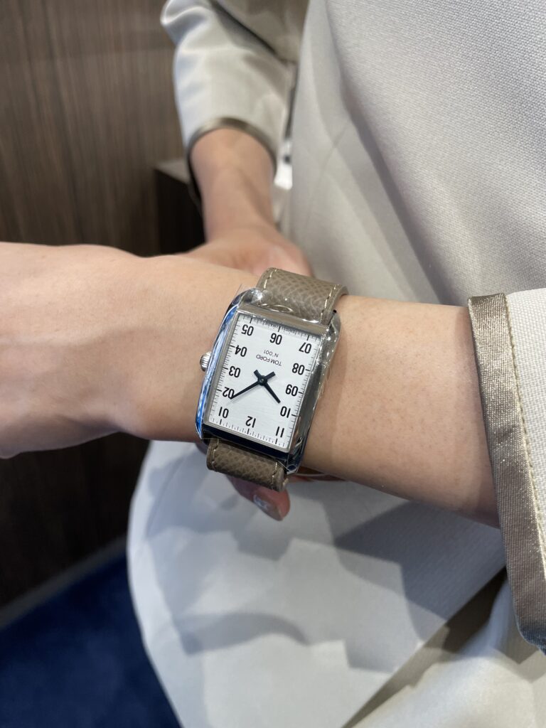 いかがですか?なかなか引き通しのベルトはないのでビックリされる方も多いと思います😊今回ご紹介したN.001だけでなく、トムフォードの時計はどのタイプも引き通しになっているのでとても便利です🙆♀️そして着用写真もご覧ください👇