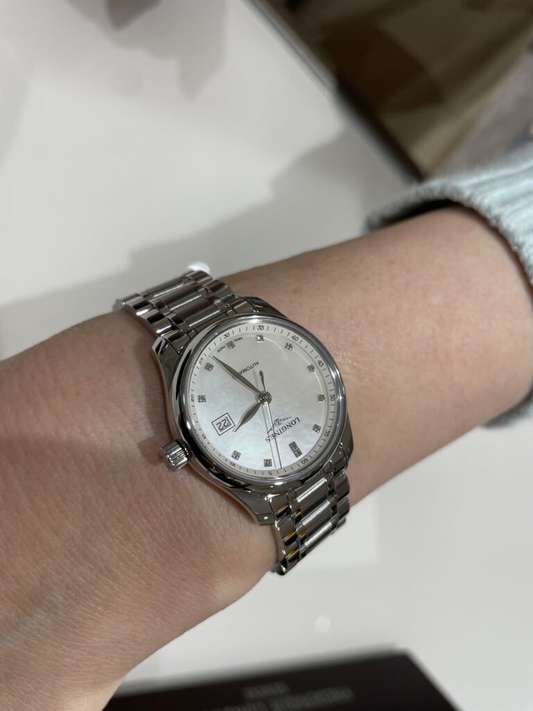 元々東京で気になっていただき、店頭になかった商品なのでお取り寄せさせていただきました☺️お待たせしてしまい申し訳ございませんでした。勤続記念にとお求めいただいたのですが、お仕事にもプライベートにもとっても使いやすいお時計ですね!とってもお似合いでした〜🥹🩷シェルの文字盤が虹色に光って場所によって違った輝きを楽しんでいただけます🫶お仕事頑張ったご褒美ですね🥰これからも末永くご愛用ください!また何かございましたらお気軽にお立ち寄りくださいね🌷お待ちしております💁♀️✨