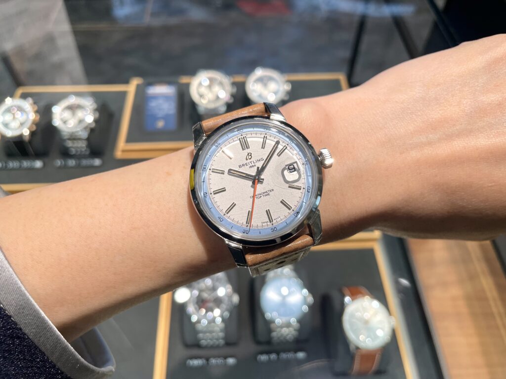 同じ文字盤でもベルトが変わるとかなり雰囲気が違いますよね🥹今回のブライトリングフェアでは沢山の時計をご用意しておりますのでこのように着け比べして自分にぴったりの時計を見つけることができますよ〜✊✨✨ぜひ足を運んでくださいね!
