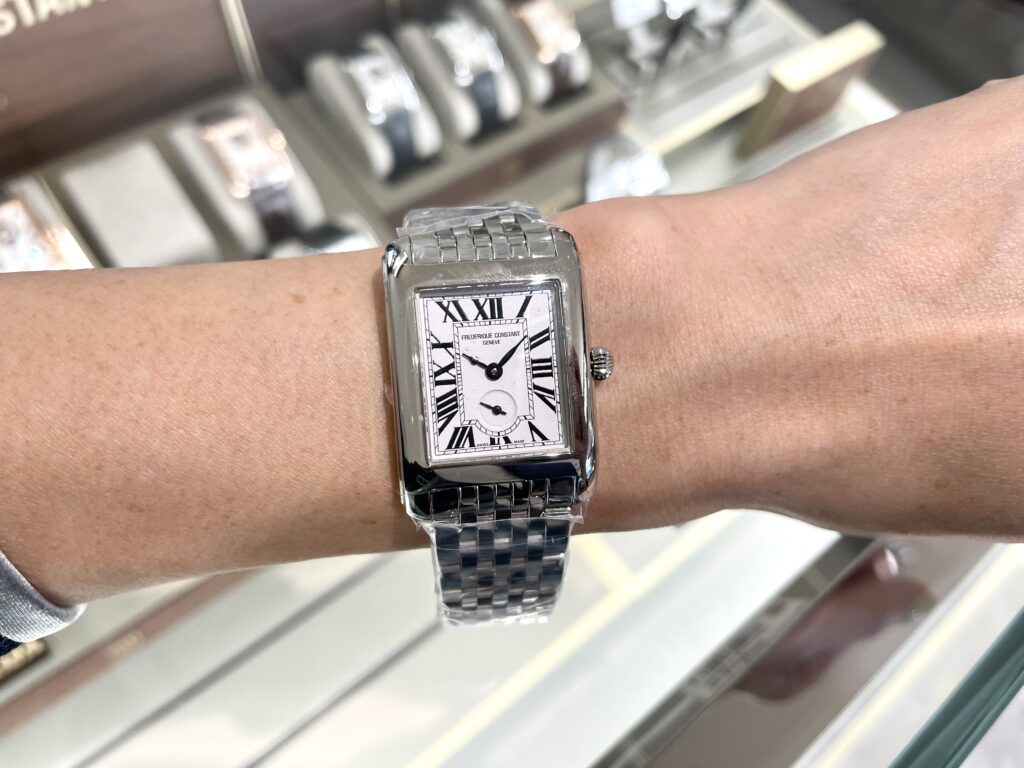 この角形のクラシックカレシリーズはフレデリックコンスタントの中でも1番の人気です🥰色々なサイズ感とカラー展開があるのでぜひ店頭でご試着してみてくださいね!皆様のご来店をお待ちしております🌻