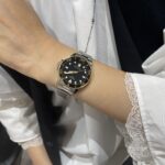 シンプルで見やすい上にシックなカラーでどんなお洋服にも合わせやすいですね☺️アリゲーター柄のブラックレザー ストラップがついておりますが、自身でベルト交換できる機能がついているので別売りのラバーベルトを合わせてコーディネートを楽しむのも素敵ですよね🫶💕