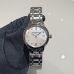 とても温かみのあるカラーの文字盤ですよね😊深いルビーレッドのマザー オブ パール ダイヤルには11個のVSダイヤモンド(直径1.40mm / 0.107カラット) がエレガントにセットされています。またこの大きさで自動巻きというのが驚きですよね✨