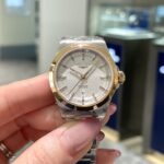 可愛い〜!!PRXはなんだかスポーティなイメージを持たれる方もいらっしゃるかと思いますがこの25mmは華奢で優しい印象を持ちますね😉文字盤のシェルも立体感があり、高級感も増します🙌こちらのPRXは他にもカラーを展開しておりますのでぜひ店頭でご試着してみてくださいね!