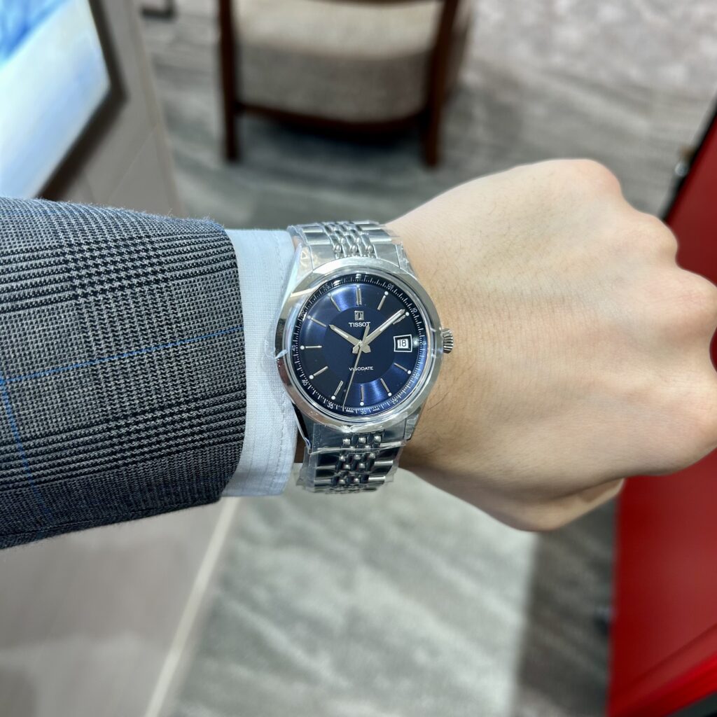 こちらの文字盤、深みのあるブルーダイヤルがとても綺麗です。