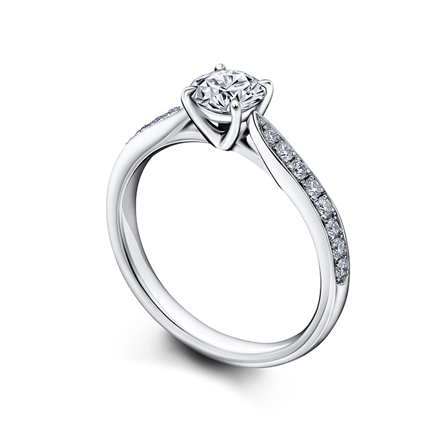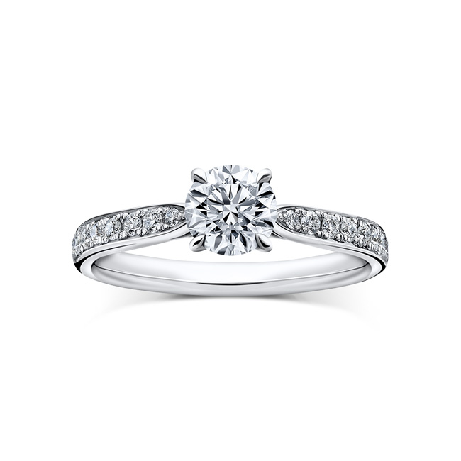 ダイヤモンドを4本爪で持ち上げた、スタイリッシュな横顔。
