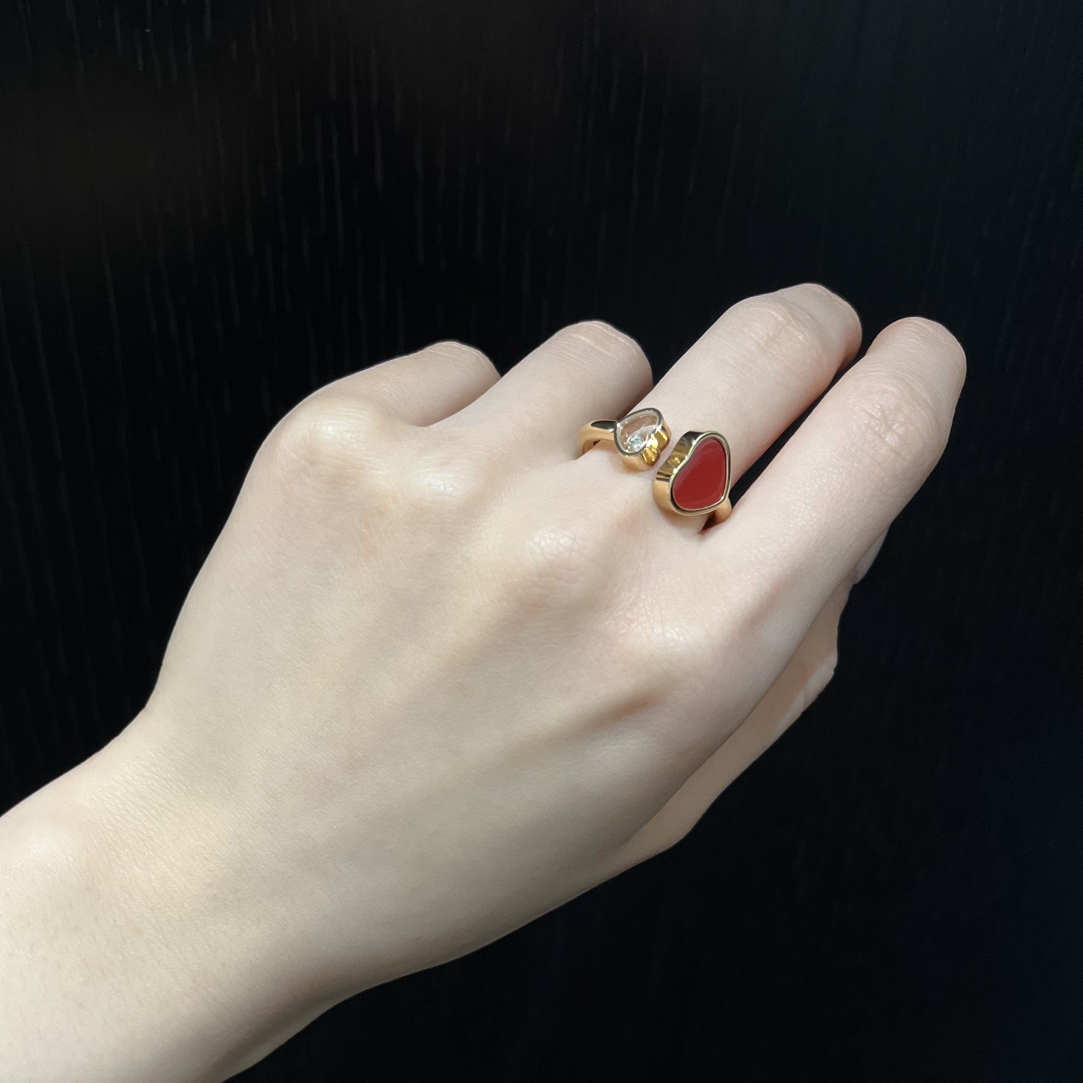 レッドストーンの赤とダイヤモンドの輝きが指元を華やかに演出してくれます💓