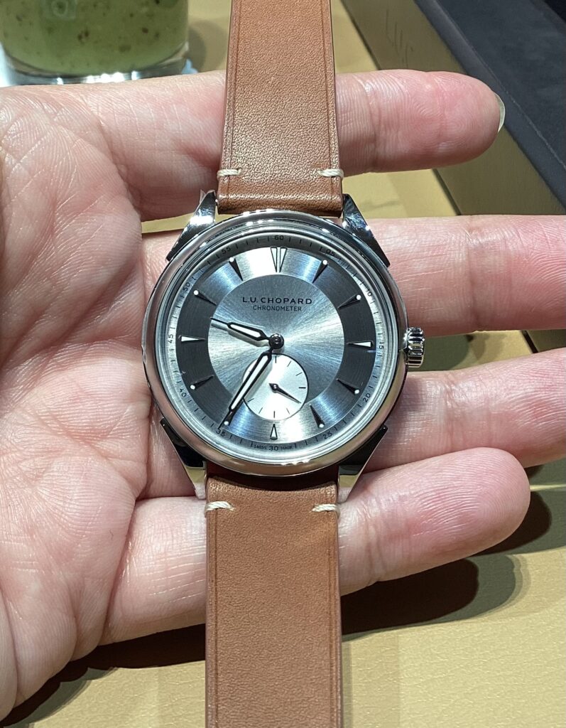 使いやすい40ミリサイズでマイクロローター採用の「L.U.C Calibre 96.12-L」を搭載しています。実用的な時計として是非ご検討頂きたいです。
